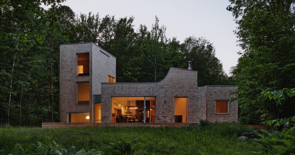 ‘waterhouse’ stands among the ferns and wildflowers of quebec Quebecois architecture studios oyama and Julia Manaças Architecte complete this