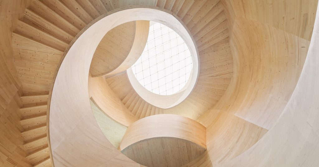 [ad_1] icd at University of Stuttgart’s atrium is carved out of timber The headquarters of the construction company Blumer
