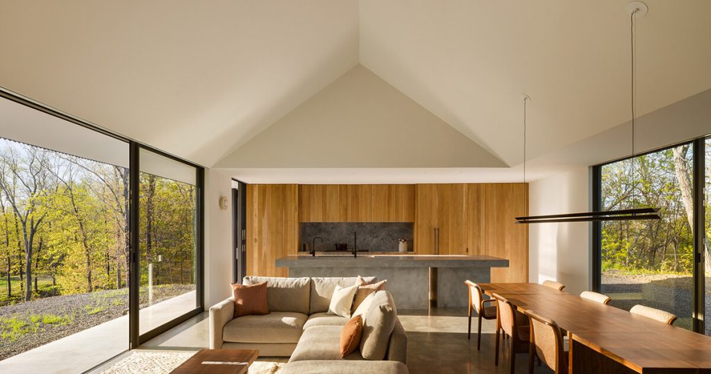 [ad_1] an elongated house follows a wooded ridgeline In a remote corner of Upstate New York, architecture studio Worrell